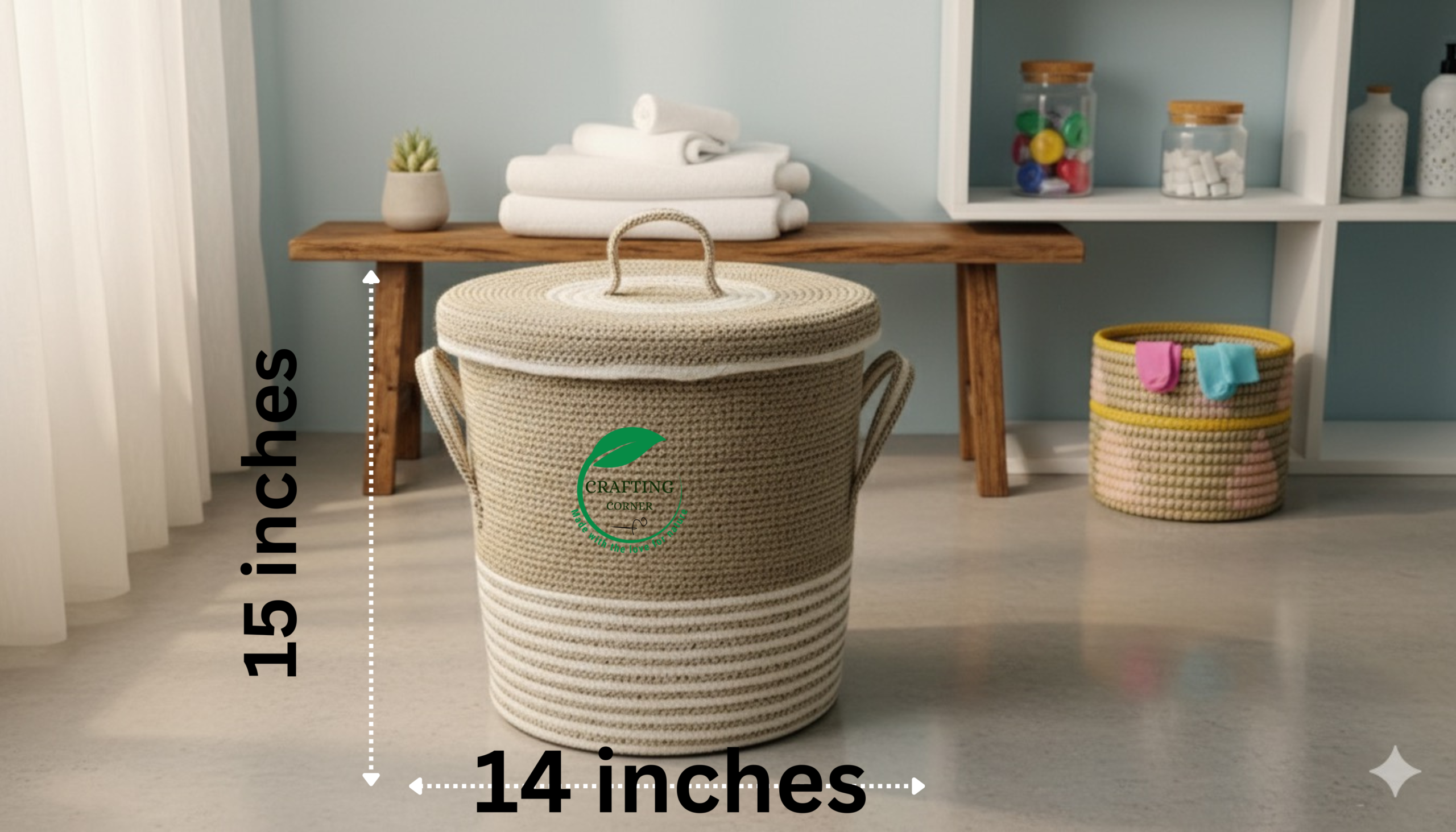 Transform your clutter into a curated display with our crafted Jute Rope Laundry Basket. Designed to blend seamlessly with boho, farmhouse, or modern minimalist decor, this basket is more than just a hamper—it’s a stylish statement piece for any room.